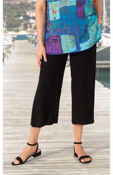 Bequeme 7/8-Schlupfhose mit Rundum-Gummizug aus reiner Viskose-Crinkle-Qualität. Betont weiter Beinverlauf, hohe Leibhöhe.
