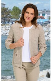 Weit geschnittenes Jersey-Shirt mit ethnischen Elementen in interessanter Flammgarn-Optik mit Fledermaus-Arm und Rundhals-Ausschnitt.