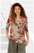 Single-Jersey-Shirt mit abstraktem floralem Druck-Dessin. Paspelierter Rundhals-Ausschnitt, Halbarm.