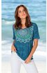 Jersey-Shirt mit platziertem Mandala-Druck-Dessin und leicht herzförmigem Halsausschnitt. Halbarm.
